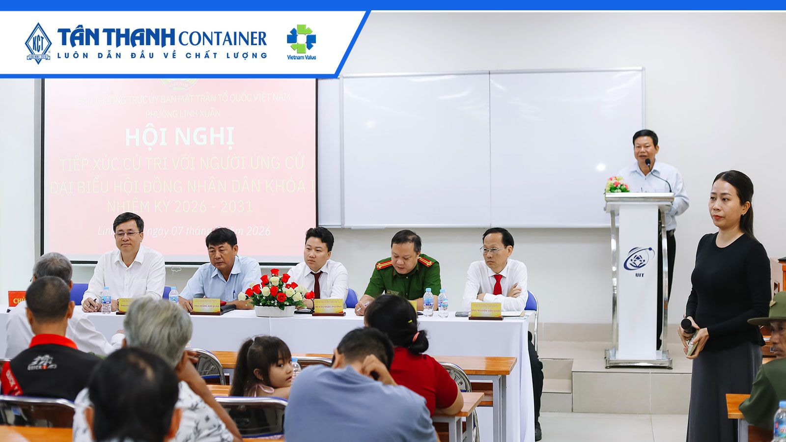 Đồng chí Kiều Ngọc Phương – Phó Tổng Giám đốc Tân Thanh Container tiếp xúc cử tri vận động bầu cử tại phường Linh Xuân khóa I, nhiệm kỳ 2026 – 2031.